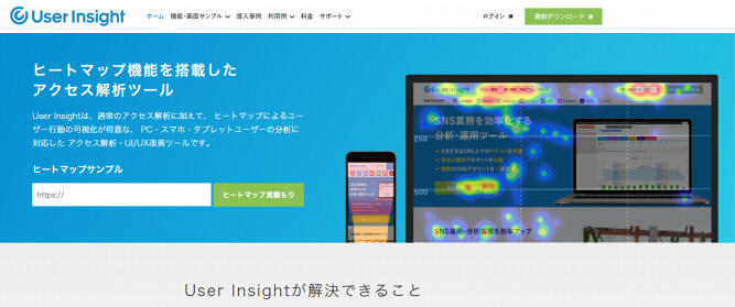 User Insightは、通常のアクセス解析に加え、ヒートマップツールの使用が可能なアクセス解析ツールです。